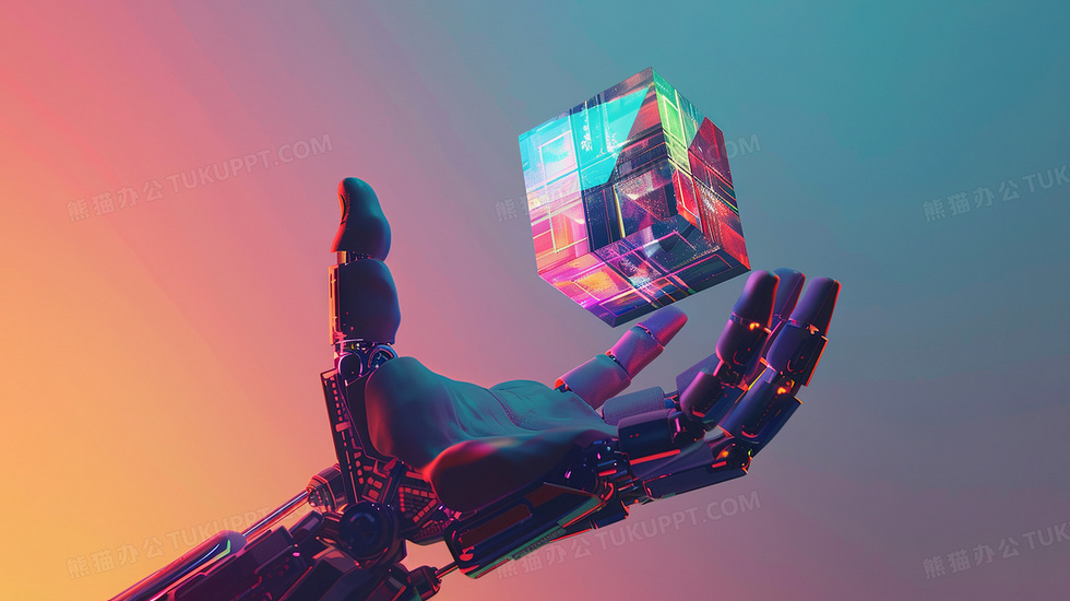 本作品内容为炫彩机器人手拿魔方背景, 格式为 jpg, 大小4 MB, 图片尺寸为2912 x 1632, 作品中背景图片无需修改, 源文件无水印,可以直接使用, 欢迎使用熊猫办公。 如认为平台内容涉嫌侵权,可通过邮件:tousu@tukuppt.com提出书面通知,我们将及时处理。