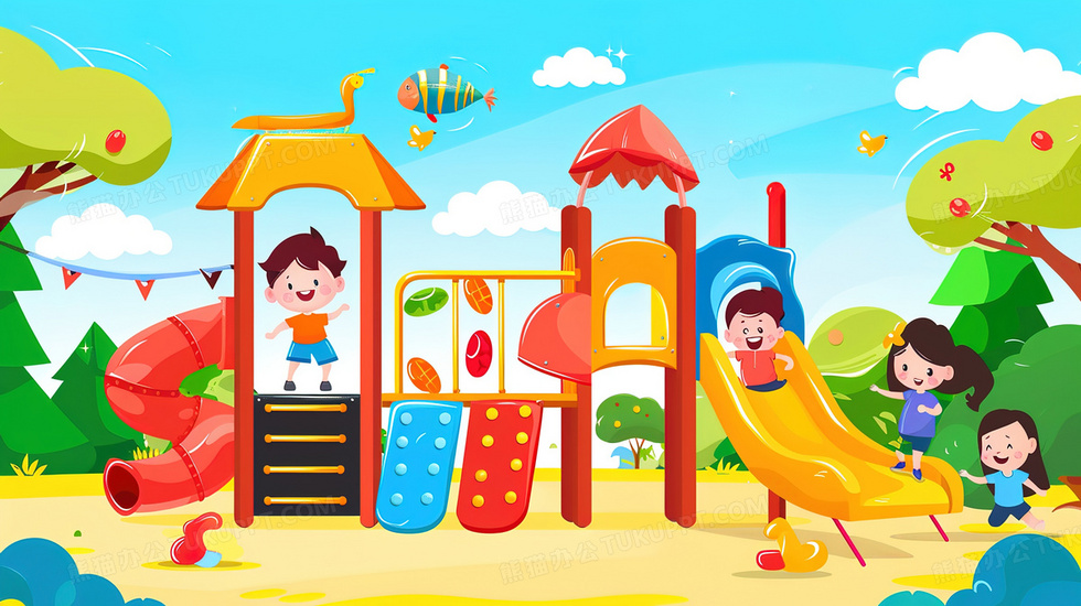 本作品内容为儿童游乐场滑滑梯的小孩子插画, 格式为 jpg, 大小2 MB, 图片尺寸为2912 x 1632, 源文件无水印, 欢迎使用熊猫办公。 如认为平台内容涉嫌侵权,可通过邮件:tousu@tukuppt.com提出书面通知,我们将及时处理。