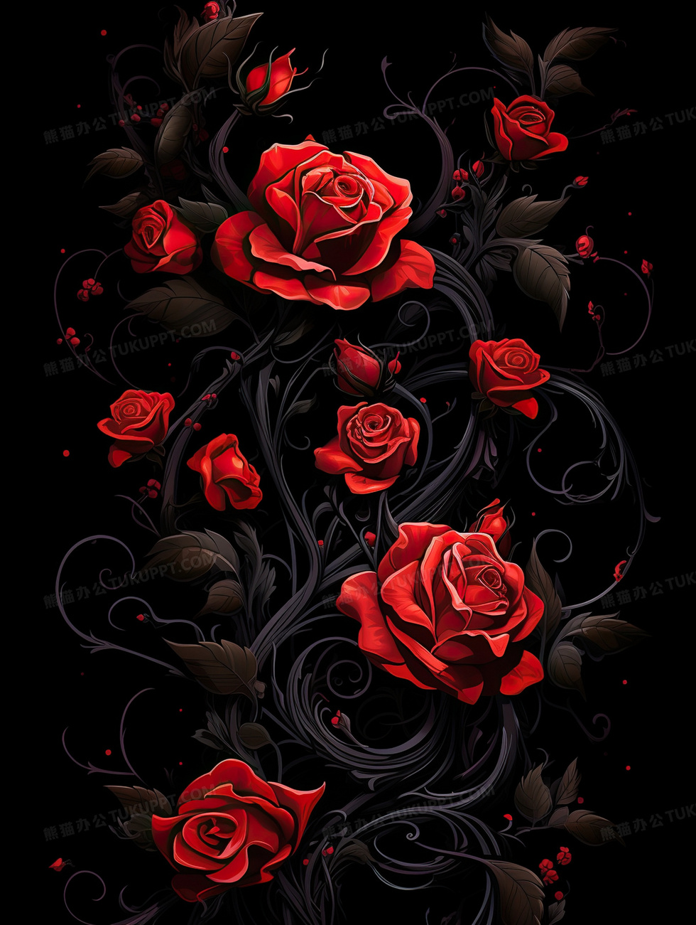 本作品内容为暗黑系红色玫瑰情人节插画, 格式为 jpg, 大小2 MB, 图片尺寸为1856 x 2464, 源文件无水印, 欢迎使用熊猫办公。 如认为平台内容涉嫌侵权,可通过邮件:tousu@tukuppt.com提出书面通知,我们将及时处理。