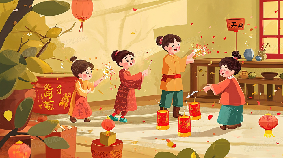 本作品内容为春节大人小孩一起放烟花的插画, 格式为 jpg, 大小3 MB, 图片尺寸为2912 x 1632, 源文件无水印, 欢迎使用熊猫办公。 如认为平台内容涉嫌侵权,可通过邮件:tousu@tukuppt.com提出书面通知,我们将及时处理。