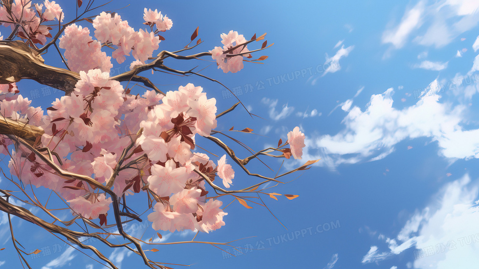 首页 > 插画 > 科技艺术 > 水彩手绘 > 蓝天白云桃花电脑壁纸背景