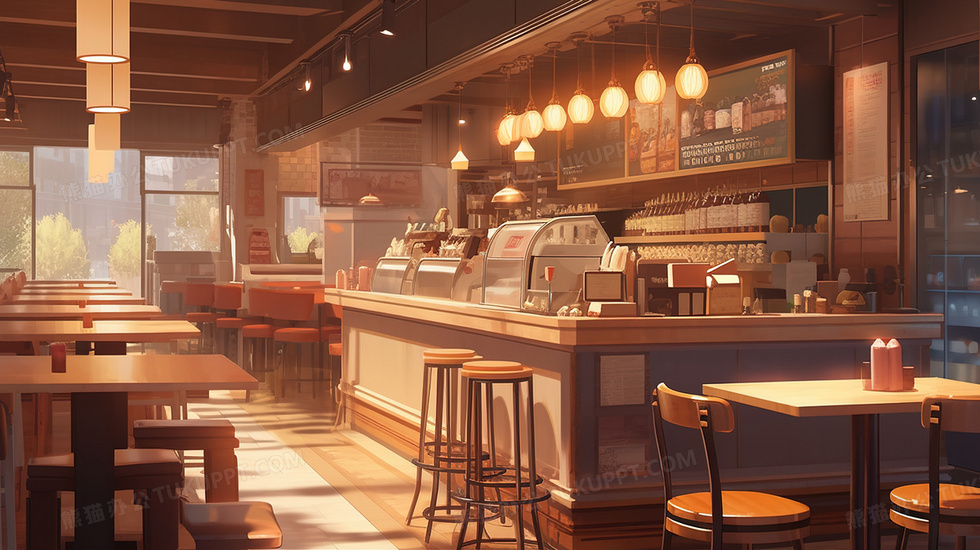 本作品内容为咖啡厅吧台室内场景插画, 格式为 jpg, 大小3 MB, 图片尺寸为2912 x 1632, 源文件无水印, 欢迎使用熊猫办公。 如认为平台内容涉嫌侵权,可通过邮件:tousu@tukuppt.com提出书面通知,我们将及时处理。