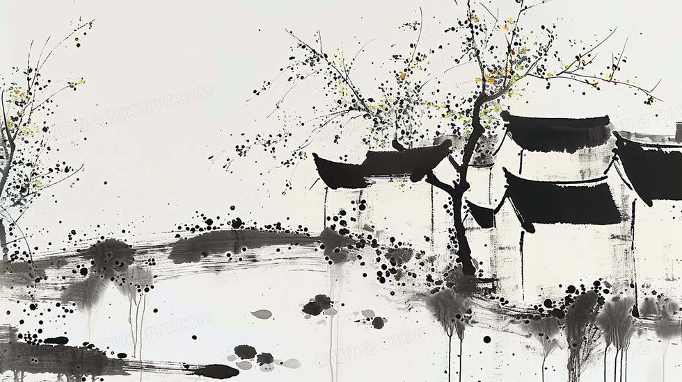 本作品内容为中国风水墨乡村建筑风景插画, 格式为 jpg, 大小3 MB, 图片尺寸为2912 x 1632, 源文件无水印, 欢迎使用熊猫办公。 如认为平台内容涉嫌侵权,可通过邮件:tousu@tukuppt.com提出书面通知,我们将及时处理。