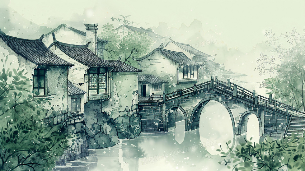 本作品内容为中国古建筑小桥流水人家插画, 格式为 jpg, 大小4 MB, 图片尺寸为2912 x 1632, 源文件无水印, 欢迎使用熊猫办公。 如认为平台内容涉嫌侵权,可通过邮件:tousu@tukuppt.com提出书面通知,我们将及时处理。