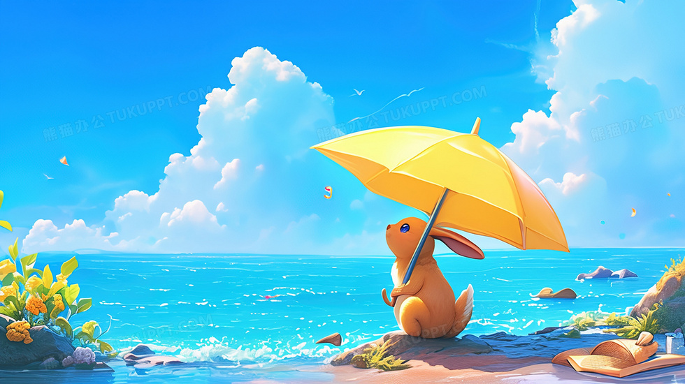 本作品内容为夏季海边撑伞防晒的可爱小动物插画, 格式为 jpg, 大小3 MB, 图片尺寸为2912 x 1632, 源文件无水印, 欢迎使用熊猫办公。 如认为平台内容涉嫌侵权,可通过邮件:tousu@tukuppt.com提出书面通知,我们将及时处理。