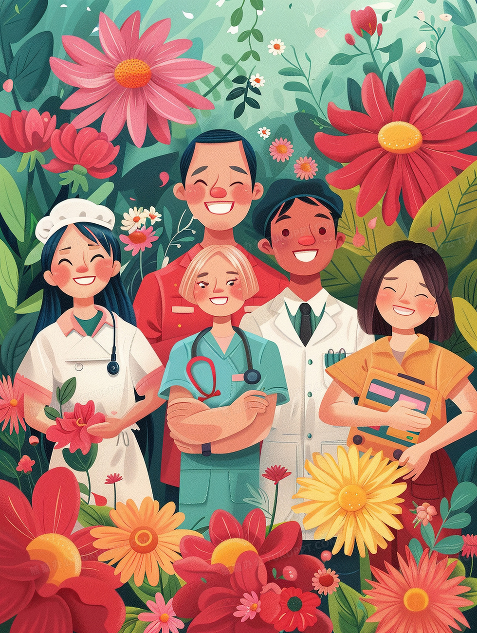 本作品内容为不同行业劳动人民职业人员合照插画, 格式为 jpg, 大小5 MB, 图片尺寸为1856 x 2464, 源文件无水印, 欢迎使用熊猫办公。 如认为平台内容涉嫌侵权,可通过邮件:tousu@tukuppt.com提出书面通知,我们将及时处理。