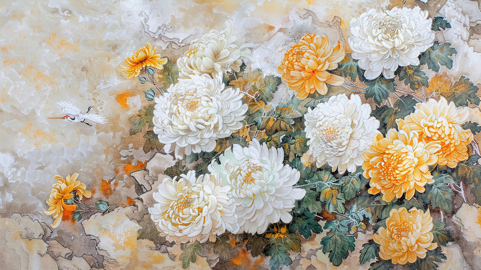 本作品内容为中国风菊花复古风插画, 格式为 jpg, 大小6 MB, 图片尺寸为2912 x 1632, 源文件无水印, 欢迎使用熊猫办公。 如认为平台内容涉嫌侵权,可通过邮件:tousu@tukuppt.com提出书面通知,我们将及时处理。