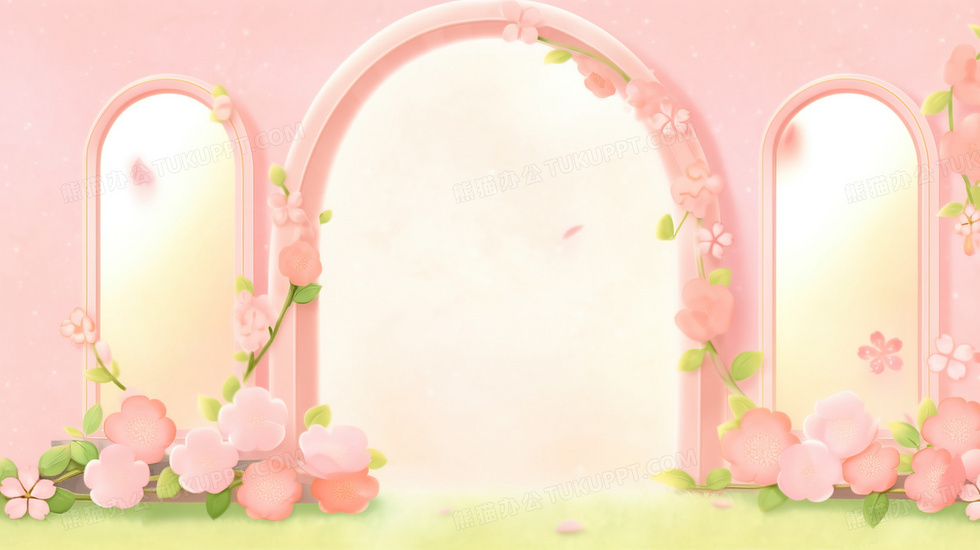 本作品内容为粉色花朵圆形拱门唯美插画, 格式为 jpg, 大小2 MB, 图片尺寸为2912 x 1632, 源文件无水印, 欢迎使用熊猫办公。 如认为平台内容涉嫌侵权,可通过邮件:tousu@tukuppt.com提出书面通知,我们将及时处理。