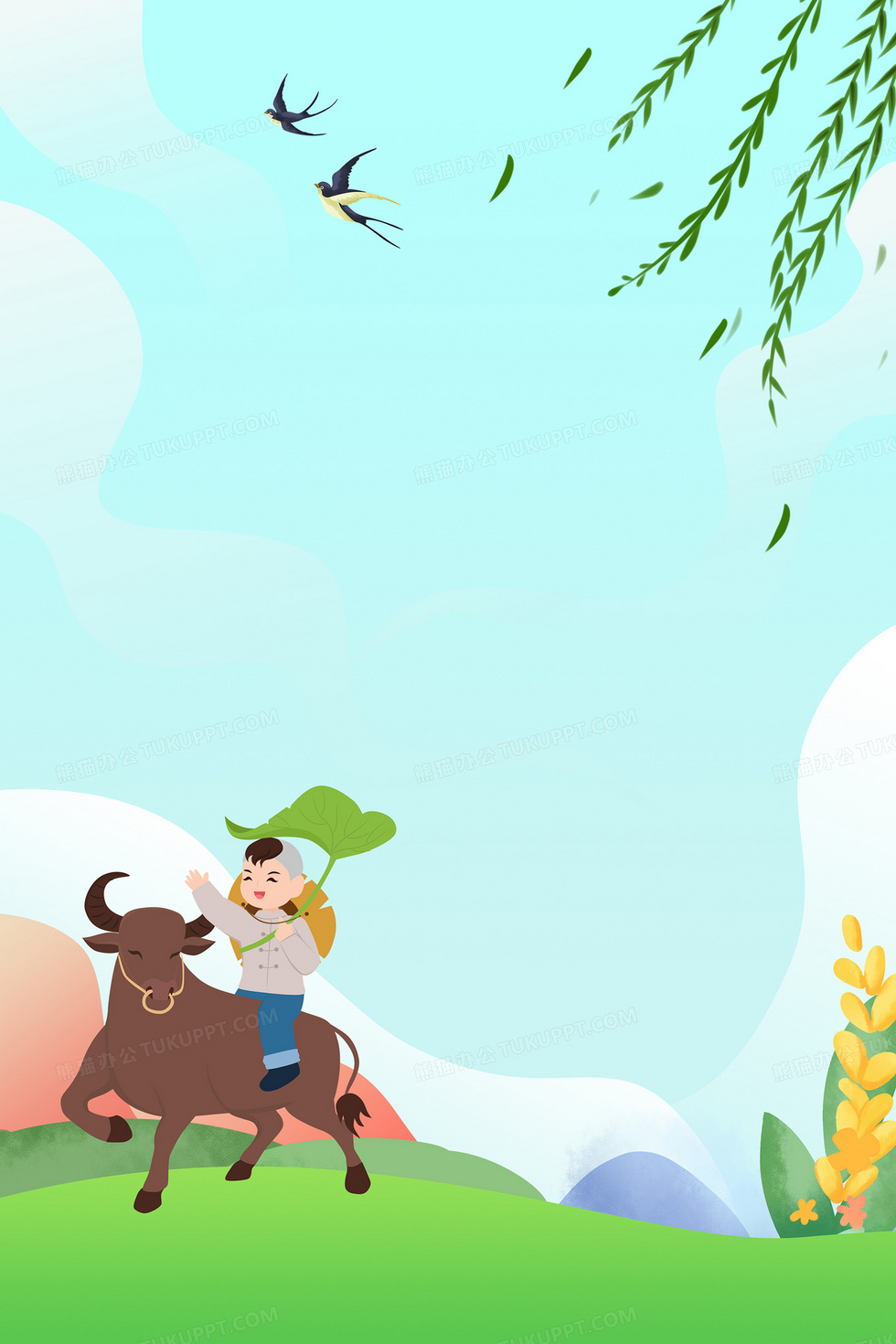 本作品内容为清明节户外牧童踏青背景, 格式为 psd, 大小67 MB, 图片尺寸为3543 x 5315, 作品中背景图片无需修改, 源文件无水印,可以直接使用, 欢迎使用熊猫办公。 如认为平台内容涉嫌侵权,可通过邮件:tousu@tukuppt.com提出书面通知,我们将及时处理。