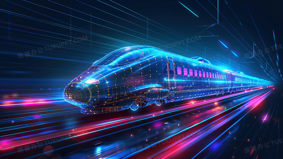 本作品内容为科技速度感高铁火车旅游背景, 格式为 jpg, 大小4 MB, 图片尺寸为2912 x 1632, 作品中背景图片无需修改, 源文件无水印,可以直接使用, 欢迎使用熊猫办公。 如认为平台内容涉嫌侵权,可通过邮件:tousu@tukuppt.com提出书面通知,我们将及时处理。