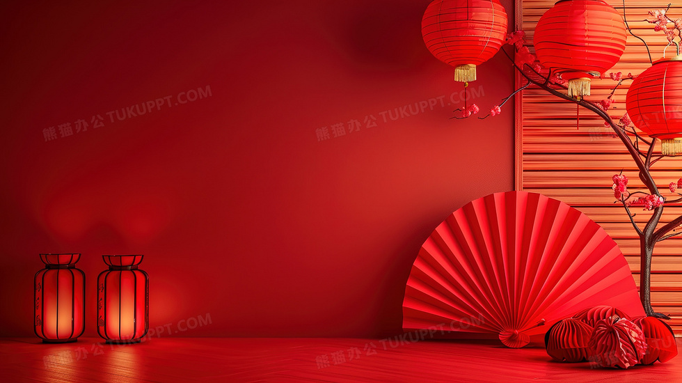 本作品内容为复古红色扇子背景, 格式为 jpg, 大小3 MB, 图片尺寸为2912 x 1632, 作品中背景图片无需修改, 源文件无水印,可以直接使用, 欢迎使用熊猫办公。 如认为平台内容涉嫌侵权,可通过邮件:tousu@tukuppt.com提出书面通知,我们将及时处理。