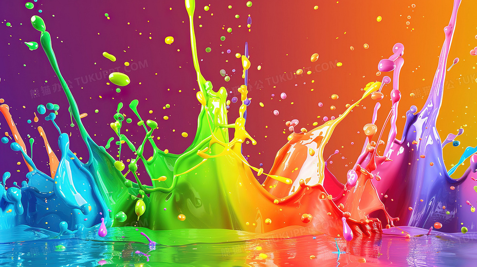 本作品内容为彩色液体飞溅油漆背景, 格式为 jpg, 大小3 MB, 图片尺寸为2912 x 1632, 作品中背景图片无需修改, 源文件无水印,可以直接使用, 欢迎使用熊猫办公。 如认为平台内容涉嫌侵权,可通过邮件:tousu@tukuppt.com提出书面通知,我们将及时处理。
