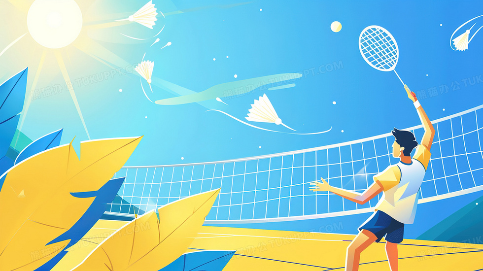 本作品内容为卡通羽毛球运动背景, 格式为 jpg, 大小3 MB, 图片尺寸为2912 x 1632, 作品中背景图片无需修改, 源文件无水印,可以直接使用, 欢迎使用熊猫办公。 如认为平台内容涉嫌侵权,可通过邮件:tousu@tukuppt.com提出书面通知,我们将及时处理。