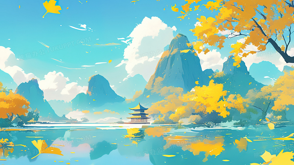 本作品内容为中国风秋天银杏树山水插画, 格式为 jpg, 大小6 MB, 图片尺寸为2876 x 1618, 源文件无水印, 欢迎使用熊猫办公。 如认为平台内容涉嫌侵权,可通过邮件:tousu@tukuppt.com提出书面通知,我们将及时处理。