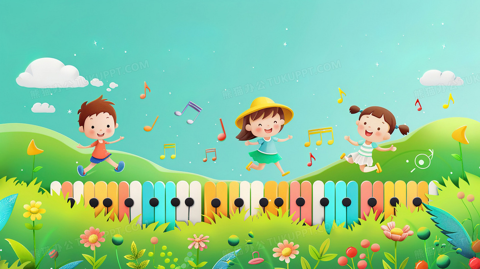 本作品内容为卡通风格孩子们在钢琴按键上跳舞的插画, 格式为 jpg, 大小3 MB, 图片尺寸为2912 x 1632, 源文件无水印, 欢迎使用熊猫办公。 如认为平台内容涉嫌侵权,可通过邮件:tousu@tukuppt.com提出书面通知,我们将及时处理。