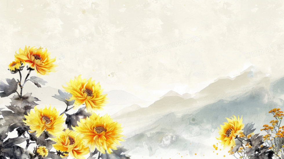 本作品内容为中国风菊花四君子国画背景, 格式为 jpg, 大小8 MB, 图片尺寸为2912 x 1632, 作品中背景图片无需修改, 源文件无水印,可以直接使用, 欢迎使用熊猫办公。 如认为平台内容涉嫌侵权,可通过邮件:tousu@tukuppt.com提出书面通知,我们将及时处理。