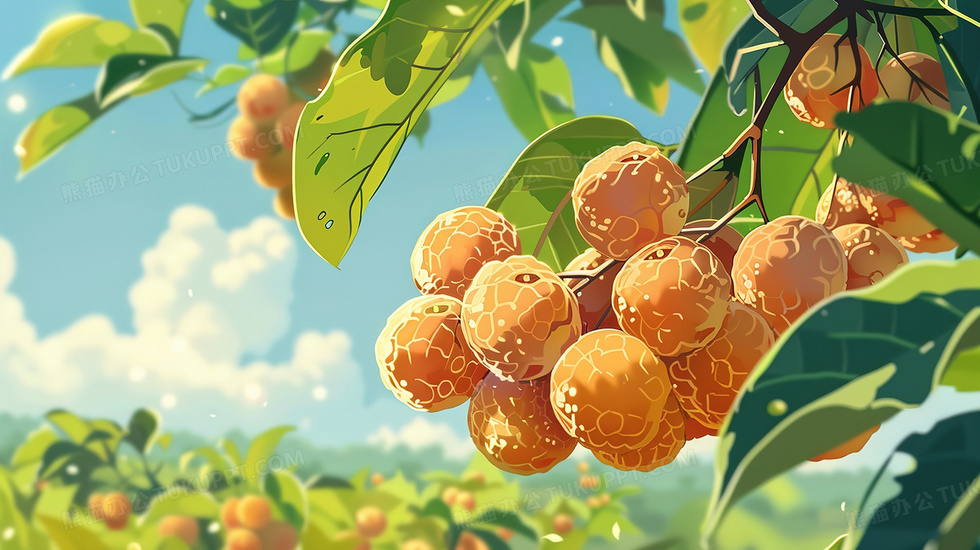 本作品内容为卡通秋天桂圆龙眼水果特写插画, 格式为 jpg, 大小3 MB, 图片尺寸为2912 x 1632, 源文件无水印, 欢迎使用熊猫办公。 如认为平台内容涉嫌侵权,可通过邮件:tousu@tukuppt.com提出书面通知,我们将及时处理。