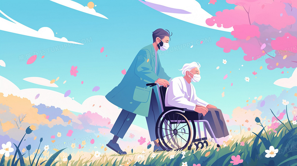 本作品内容为医生照顾生病的坐轮椅老人插画, 格式为 jpg, 大小2 MB, 图片尺寸为2912 x 1632, 源文件无水印, 欢迎使用熊猫办公。 如认为平台内容涉嫌侵权,可通过邮件:tousu@tukuppt.com提出书面通知,我们将及时处理。