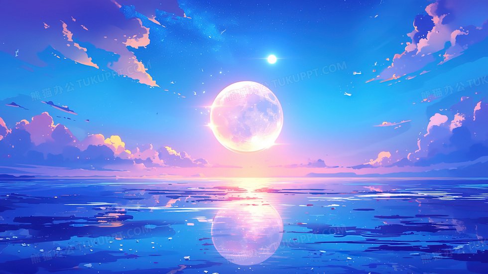 本作品内容为海面上的唯美月亮景色插画, 格式为 jpg, 大小3 MB, 图片尺寸为2912 x 1632, 源文件无水印, 欢迎使用熊猫办公。 如认为平台内容涉嫌侵权,可通过邮件:tousu@tukuppt.com提出书面通知,我们将及时处理。