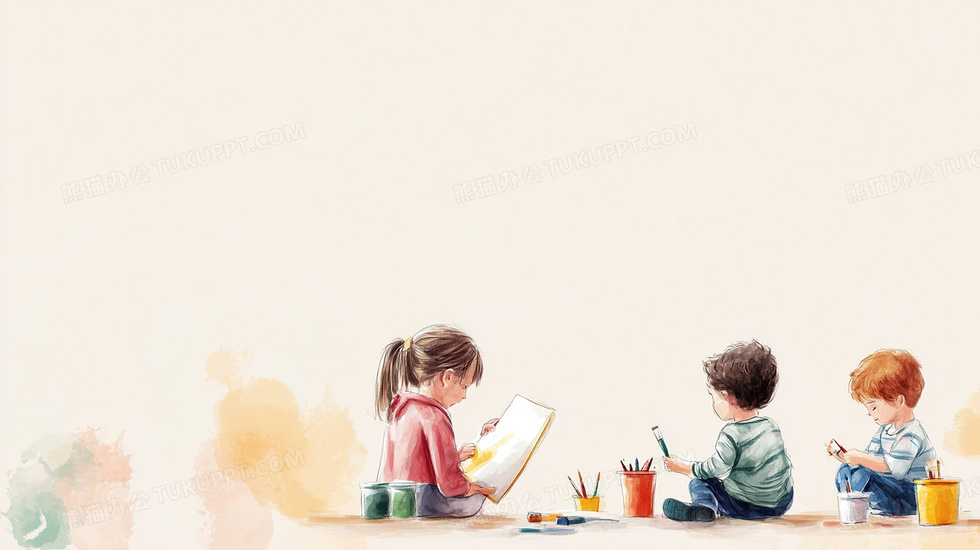本作品内容为卡通风格小孩子学习美术, 格式为 jpg, 大小2 MB, 图片尺寸为2912 x 1632, 作品中背景图片无需修改, 源文件无水印,可以直接使用, 欢迎使用熊猫办公。 如认为平台内容涉嫌侵权,可通过邮件:tousu@tukuppt.com提出书面通知,我们将及时处理。
