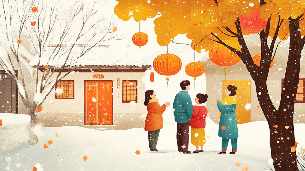 本作品内容为喜庆新年人们走亲戚拜年插画, 格式为 jpg, 大小4 MB, 图片尺寸为2912 x 1632, 源文件无水印, 欢迎使用熊猫办公。 如认为平台内容涉嫌侵权,可通过邮件:tousu@tukuppt.com提出书面通知,我们将及时处理。
