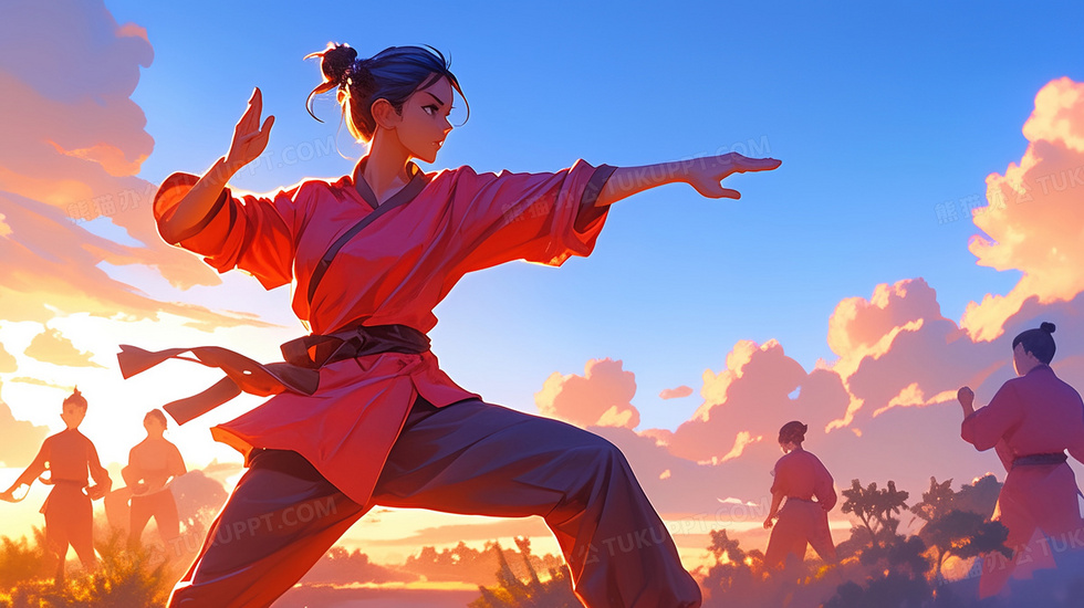 本作品内容为功夫运动锻炼的女子插画, 格式为 jpg, 大小2 MB, 图片尺寸为2912 x 1632, 源文件无水印, 欢迎使用熊猫办公。 如认为平台内容涉嫌侵权,可通过邮件:tousu@tukuppt.com提出书面通知,我们将及时处理。