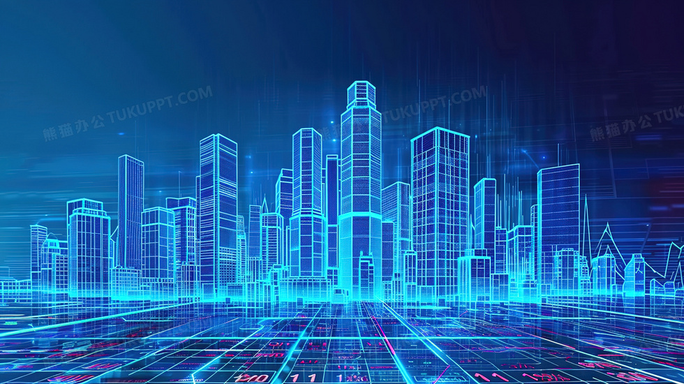 本作品内容为蓝色科技感智慧城市建筑背景, 格式为 jpg, 大小4 MB, 图片尺寸为2912 x 1632, 作品中背景图片无需修改, 源文件无水印,可以直接使用, 欢迎使用熊猫办公。 如认为平台内容涉嫌侵权,可通过邮件:tousu@tukuppt.com提出书面通知,我们将及时处理。