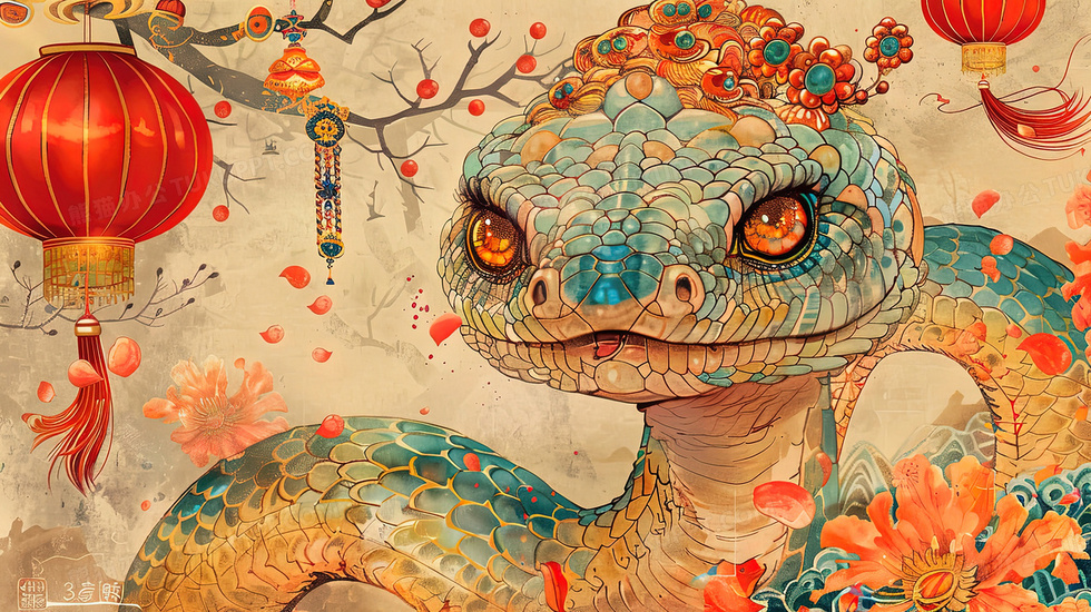 本作品内容为蛇年水墨灯笼花卉与青蛇插画, 格式为 jpg, 大小5 MB, 图片尺寸为2912 x 1632, 源文件无水印, 欢迎使用熊猫办公。 如认为平台内容涉嫌侵权,可通过邮件:tousu@tukuppt.com提出书面通知,我们将及时处理。