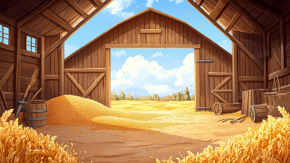 本作品内容为卡通手绘风格丰收的粮仓插画, 格式为 jpg, 大小3 MB, 图片尺寸为2912 x 1632, 源文件无水印, 欢迎使用熊猫办公。 如认为平台内容涉嫌侵权,可通过邮件:tousu@tukuppt.com提出书面通知,我们将及时处理。