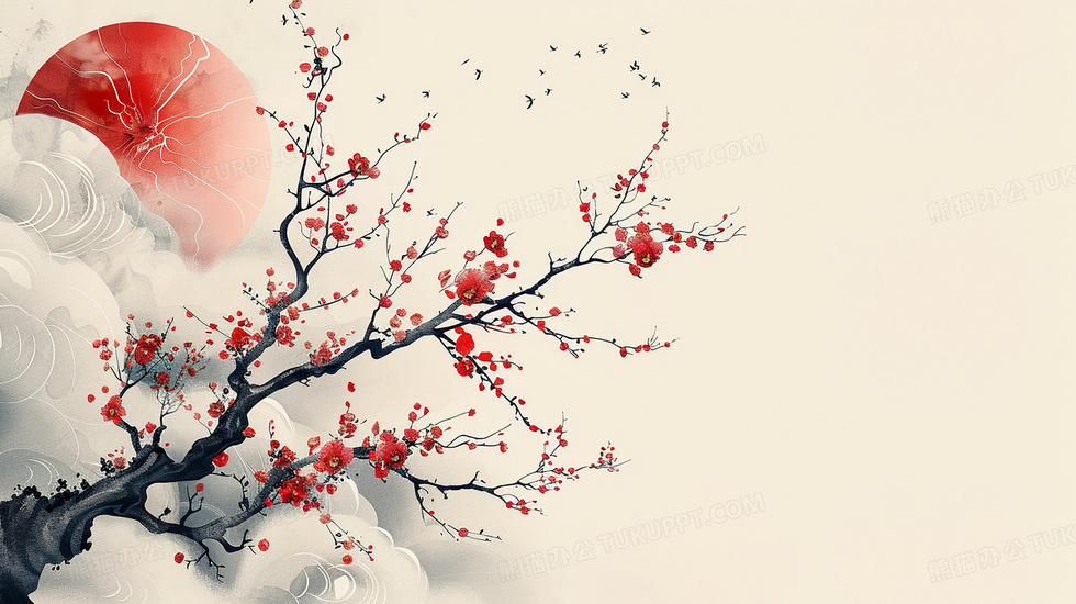 本作品内容为梅花山水中国风简约水墨背景, 格式为 jpg, 大小3 MB, 图片尺寸为2912 x 1632, 作品中背景图片无需修改, 源文件无水印,可以直接使用, 欢迎使用熊猫办公。 如认为平台内容涉嫌侵权,可通过邮件:tousu@tukuppt.com提出书面通知,我们将及时处理。