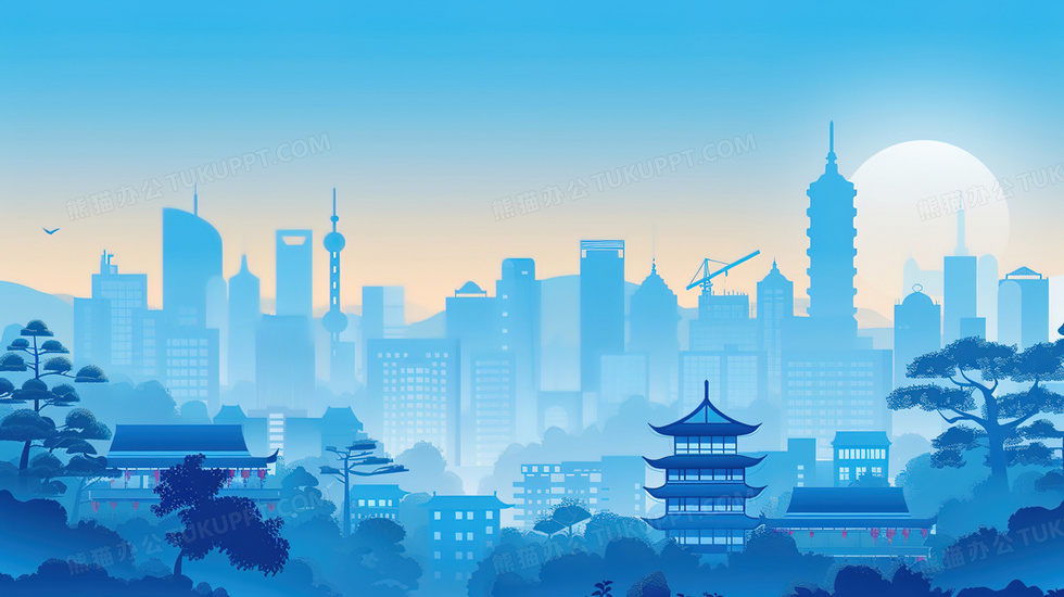 本作品内容为蓝色城市建筑剪影风景插画, 格式为 jpg, 大小2 MB, 图片尺寸为2912 x 1632, 源文件无水印, 欢迎使用熊猫办公。 如认为平台内容涉嫌侵权,可通过邮件:tousu@tukuppt.com提出书面通知,我们将及时处理。