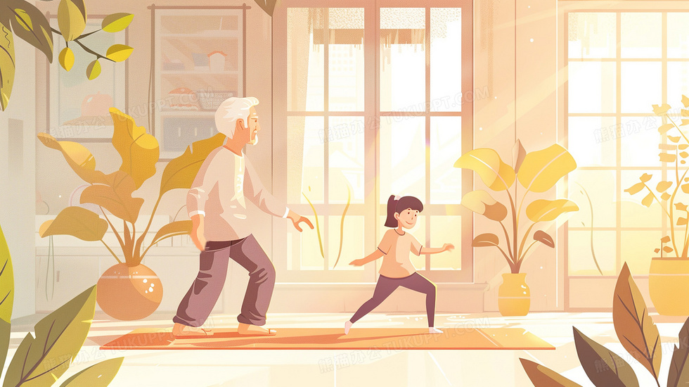 本作品内容为孩子和爷爷早起晨练插画, 格式为 jpg, 大小3 MB, 图片尺寸为2912 x 1632, 源文件无水印, 欢迎使用熊猫办公。 如认为平台内容涉嫌侵权,可通过邮件:tousu@tukuppt.com提出书面通知,我们将及时处理。