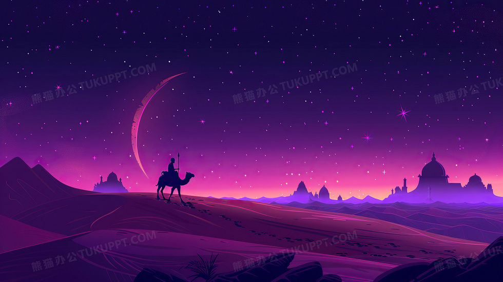本作品内容为紫色沙漠梦幻星空夜晚背景, 格式为 jpg, 大小3 MB, 图片尺寸为2912 x 1632, 作品中背景图片无需修改, 源文件无水印,可以直接使用, 欢迎使用熊猫办公。 如认为平台内容涉嫌侵权,可通过邮件:tousu@tukuppt.com提出书面通知,我们将及时处理。