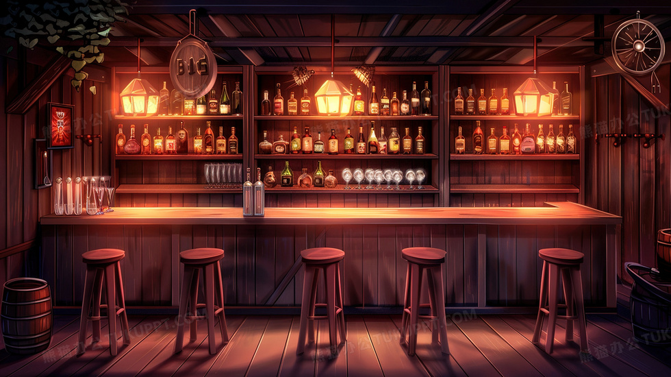 本作品内容为晚上的酒吧吧台酒柜场景插画, 格式为 jpg, 大小3 MB, 图片尺寸为2912 x 1632, 源文件无水印, 欢迎使用熊猫办公。 如认为平台内容涉嫌侵权,可通过邮件:tousu@tukuppt.com提出书面通知,我们将及时处理。