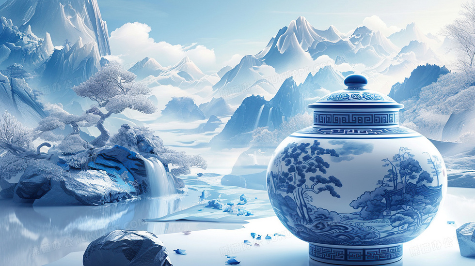 本作品内容为蓝色中国风山水瓷器陶瓷插画, 格式为 jpg, 大小4 MB, 图片尺寸为2912 x 1632, 源文件无水印, 欢迎使用熊猫办公。 如认为平台内容涉嫌侵权,可通过邮件:tousu@tukuppt.com提出书面通知,我们将及时处理。