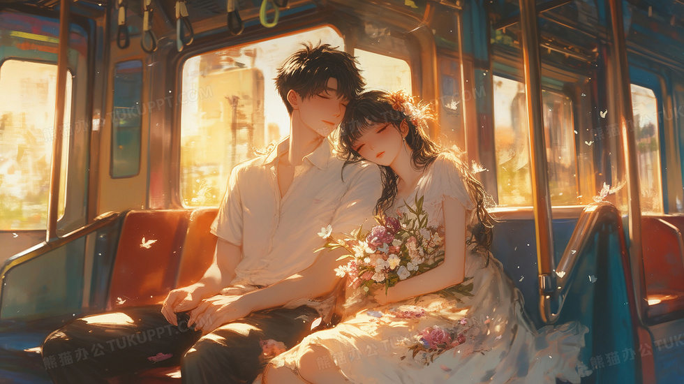 本作品内容为卡通唯美一对情侣在公交车上睡着插画, 格式为 jpg, 大小3 MB, 图片尺寸为2912 x 1632, 源文件无水印, 欢迎使用熊猫办公。 如认为平台内容涉嫌侵权,可通过邮件:tousu@tukuppt.com提出书面通知,我们将及时处理。