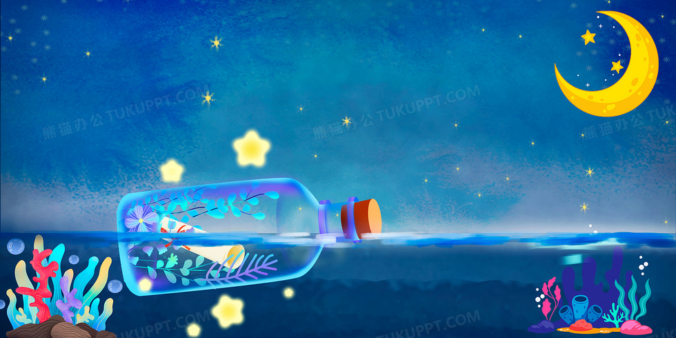 本作品内容为蓝色海洋漂流瓶梦幻背景, 格式为 psd, 大小147 MB, 图片尺寸为4725 x 2362, 作品中背景图片无需修改, 源文件无水印,可以直接使用, 欢迎使用熊猫办公。 如认为平台内容涉嫌侵权,可通过邮件:tousu@tukuppt.com提出书面通知,我们将及时处理。