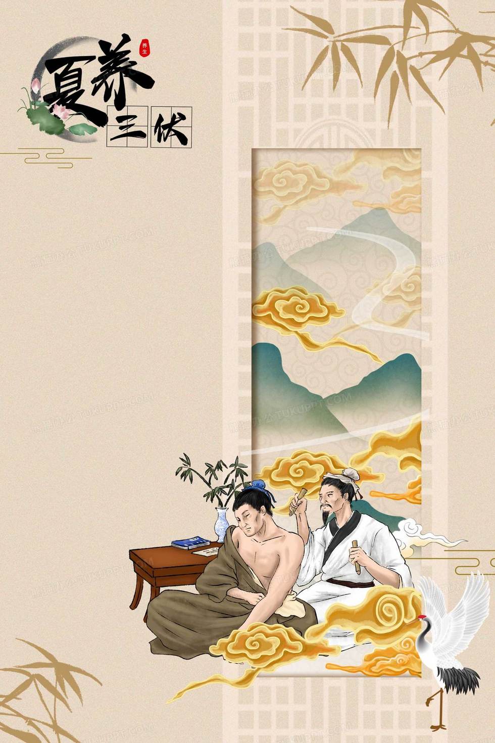 本作品内容为古风三伏天夏日复古背景, 格式为 psd, 大小105 MB, 图片尺寸为2362 x 3543, 作品中背景图片无需修改, 源文件无水印,可以直接使用, 欢迎使用熊猫办公。 如认为平台内容涉嫌侵权,可通过邮件:tousu@tukuppt.com提出书面通知,我们将及时处理。