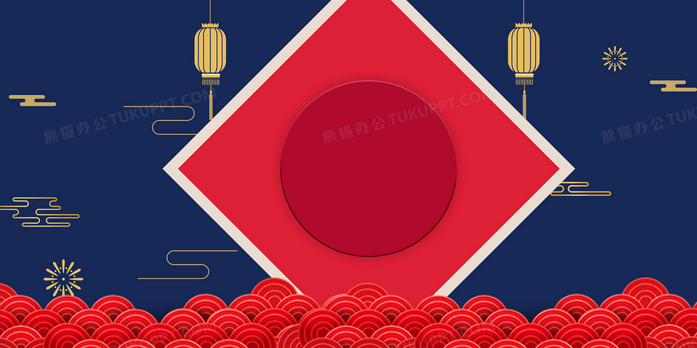 本作品内容为新年中国风国潮背景, 格式为 psd, 大小7 MB, 图片尺寸为4724 x 2362, 作品中背景图片无需修改, 源文件无水印,可以直接使用, 欢迎使用熊猫办公。 如认为平台内容涉嫌侵权,可通过邮件:tousu@tukuppt.com提出书面通知,我们将及时处理。