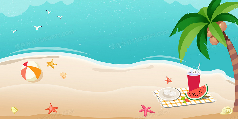 本作品内容为夏天沙滩西瓜冷饮清凉卡通背景, 格式为 psd, 大小19 MB, 图片尺寸为4724 x 2362, 作品中背景图片无需修改, 源文件无水印,可以直接使用, 欢迎使用熊猫办公。 如认为平台内容涉嫌侵权,可通过邮件:tousu@tukuppt.com提出书面通知,我们将及时处理。