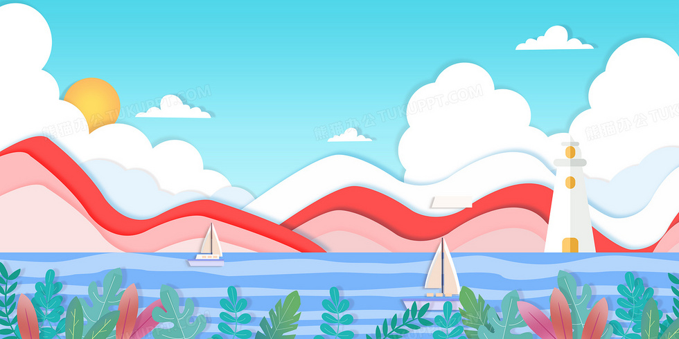 本作品内容为帆船大海风塔创意清新剪纸风背景, 格式为 psd, 大小25 MB, 图片尺寸为4724 x 2362, 作品中背景图片无需修改, 源文件无水印,可以直接使用, 欢迎使用熊猫办公。 如认为平台内容涉嫌侵权,可通过邮件:tousu@tukuppt.com提出书面通知,我们将及时处理。