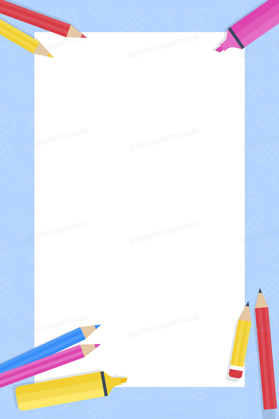 本作品内容为蓝色卡通彩笔学习教育学校画框背景图, 格式为 psd, 大小5 MB, 图片尺寸为3545 x 5315, 作品中背景图片无需修改, 源文件无水印,可以直接使用, 欢迎使用熊猫办公。 如认为平台内容涉嫌侵权,可通过邮件:tousu@tukuppt.com提出书面通知,我们将及时处理。