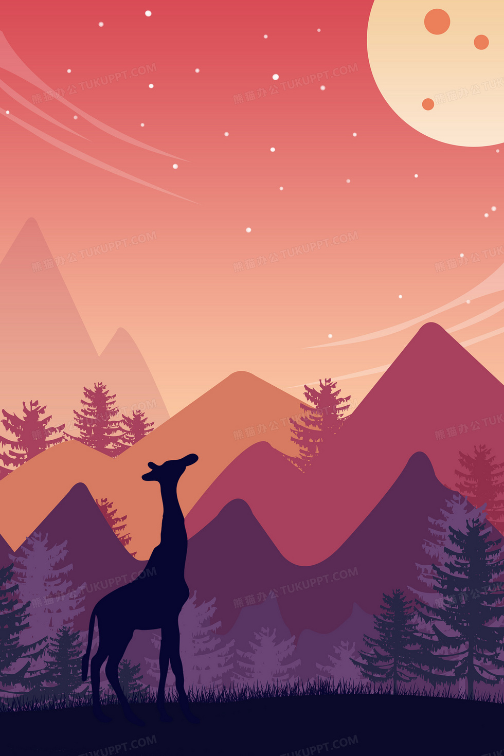 本作品内容为野生动物长颈鹿简约剪影风景背景, 格式为 psd, 大小7 MB, 图片尺寸为3543 x 5315, 作品中背景图片无需修改, 源文件无水印,可以直接使用, 欢迎使用熊猫办公。 如认为平台内容涉嫌侵权,可通过邮件:tousu@tukuppt.com提出书面通知,我们将及时处理。