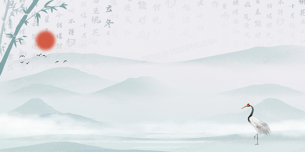 本作品内容为清新水墨中国风白鹤二十四节气立冬诗句背景, 格式为 psd, 大小84 MB, 图片尺寸为4724 x 2362, 作品中背景图片无需修改, 源文件无水印,可以直接使用, 欢迎使用熊猫办公。 如认为平台内容涉嫌侵权,可通过邮件:tousu@tukuppt.com提出书面通知,我们将及时处理。