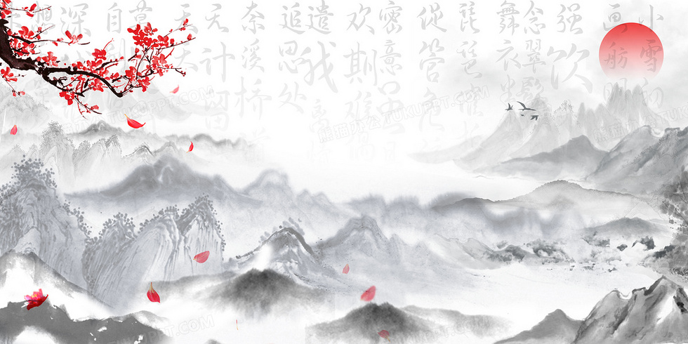 本作品内容为水墨意境中国风小雪诗词背景, 格式为 psd, 大小86 MB, 图片尺寸为4724 x 2362, 作品中背景图片无需修改, 源文件无水印,可以直接使用, 欢迎使用熊猫办公。 如认为平台内容涉嫌侵权,可通过邮件:tousu@tukuppt.com提出书面通知,我们将及时处理。
