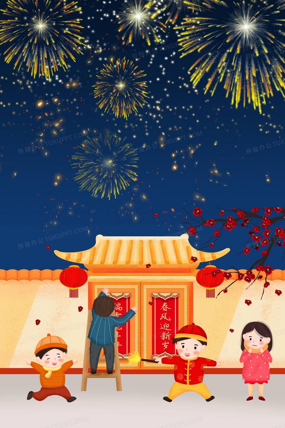 本作品内容为新年夜晚放烟花贴对联手绘背景, 格式为 psd, 大小27 MB, 图片尺寸为2362 x 3543, 作品中背景图片无需修改, 源文件无水印,可以直接使用, 欢迎使用熊猫办公。 如认为平台内容涉嫌侵权,可通过邮件:tousu@tukuppt.com提出书面通知,我们将及时处理。