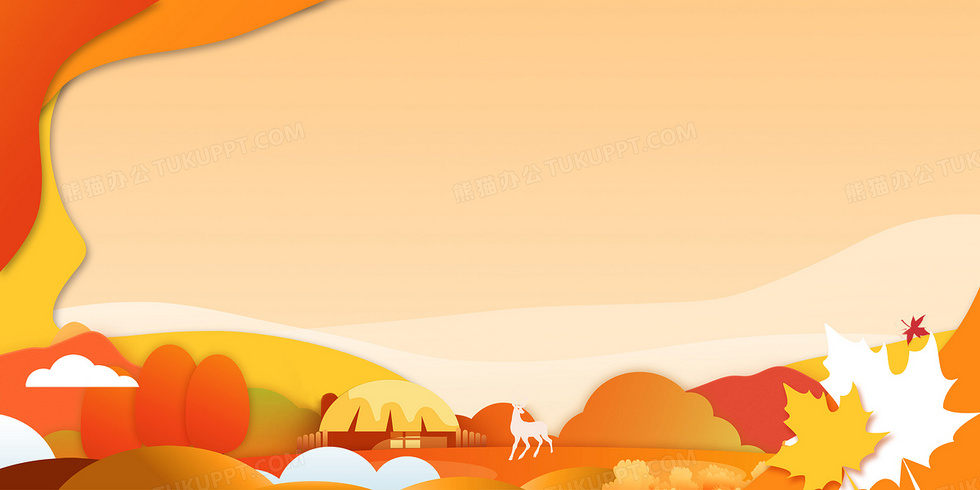 本作品内容为创意剪纸风秋天落叶背景, 格式为 psd, 大小44 MB, 图片尺寸为4724 x 2362, 作品中背景图片无需修改, 源文件无水印,可以直接使用, 欢迎使用熊猫办公。 如认为平台内容涉嫌侵权,可通过邮件:tousu@tukuppt.com提出书面通知,我们将及时处理。