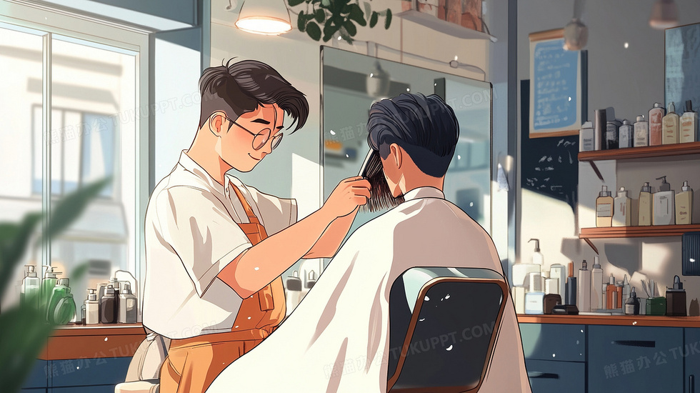 本作品内容为理发师职业人物工作插画, 格式为 jpg, 大小3 MB, 图片尺寸为2912 x 1632, 源文件无水印, 欢迎使用熊猫办公。 如认为平台内容涉嫌侵权,可通过邮件:tousu@tukuppt.com提出书面通知,我们将及时处理。