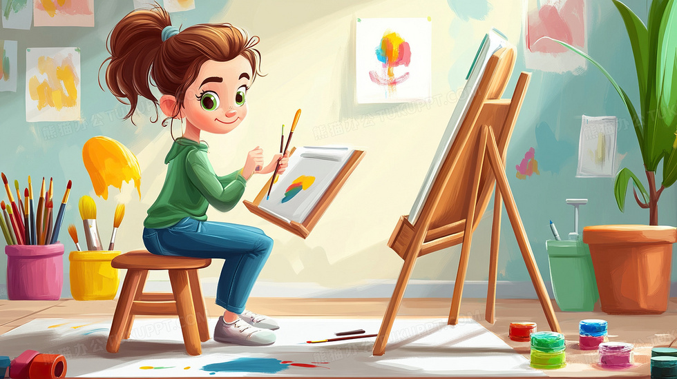 本作品内容为画架女孩绘画艺术美术插画, 格式为 jpg, 大小3 MB, 图片尺寸为2912 x 1632, 源文件无水印, 欢迎使用熊猫办公。 如认为平台内容涉嫌侵权,可通过邮件:tousu@tukuppt.com提出书面通知,我们将及时处理。