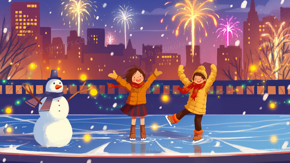 本作品内容为烟花下滑雪的卡通儿童雪人插画, 格式为 jpg, 大小3 MB, 图片尺寸为2912 x 1632, 源文件无水印, 欢迎使用熊猫办公。 如认为平台内容涉嫌侵权,可通过邮件:tousu@tukuppt.com提出书面通知,我们将及时处理。